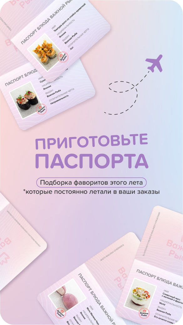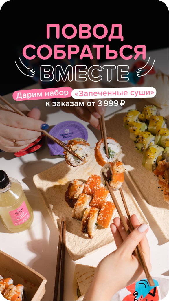 К гостям обращаемся на «Вы», независимо от возраста аудитории. Подача информации — эмоциональная, побуждающая что-то почувствовать, вспомнить, затронуть струнки души и, как итог, — купить наш продукт. Формировать ассоциативный ряд у клиента, что Важная Рыба — это удовольствие, хорошо проведенное время, довольные близкие и высвобожденное время от готовки.